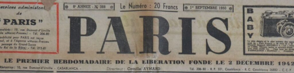 Directeur du journal hebdomadaire Paris (fondé en 1942 à Casablanca).